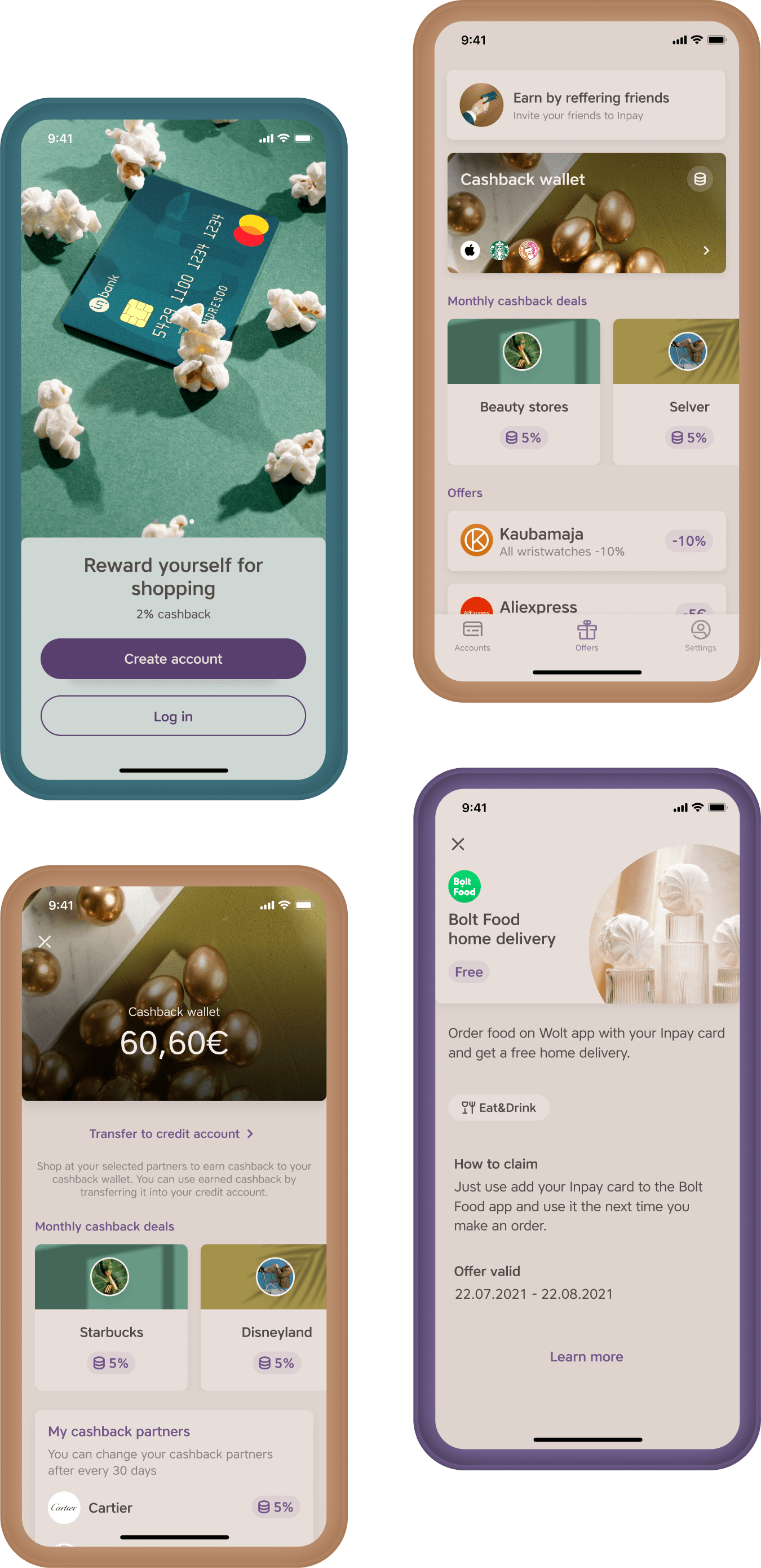 KYC edukalt läbinud kasutajale tutvustatakse rakenduse peamisi väärtuspakkumisi - ahvatlevat cashback lahendust ja hüvede süsteemi ning seda, kuidas oma silmaga näha cashbacki kasumit oma rakenduse pealehelt.