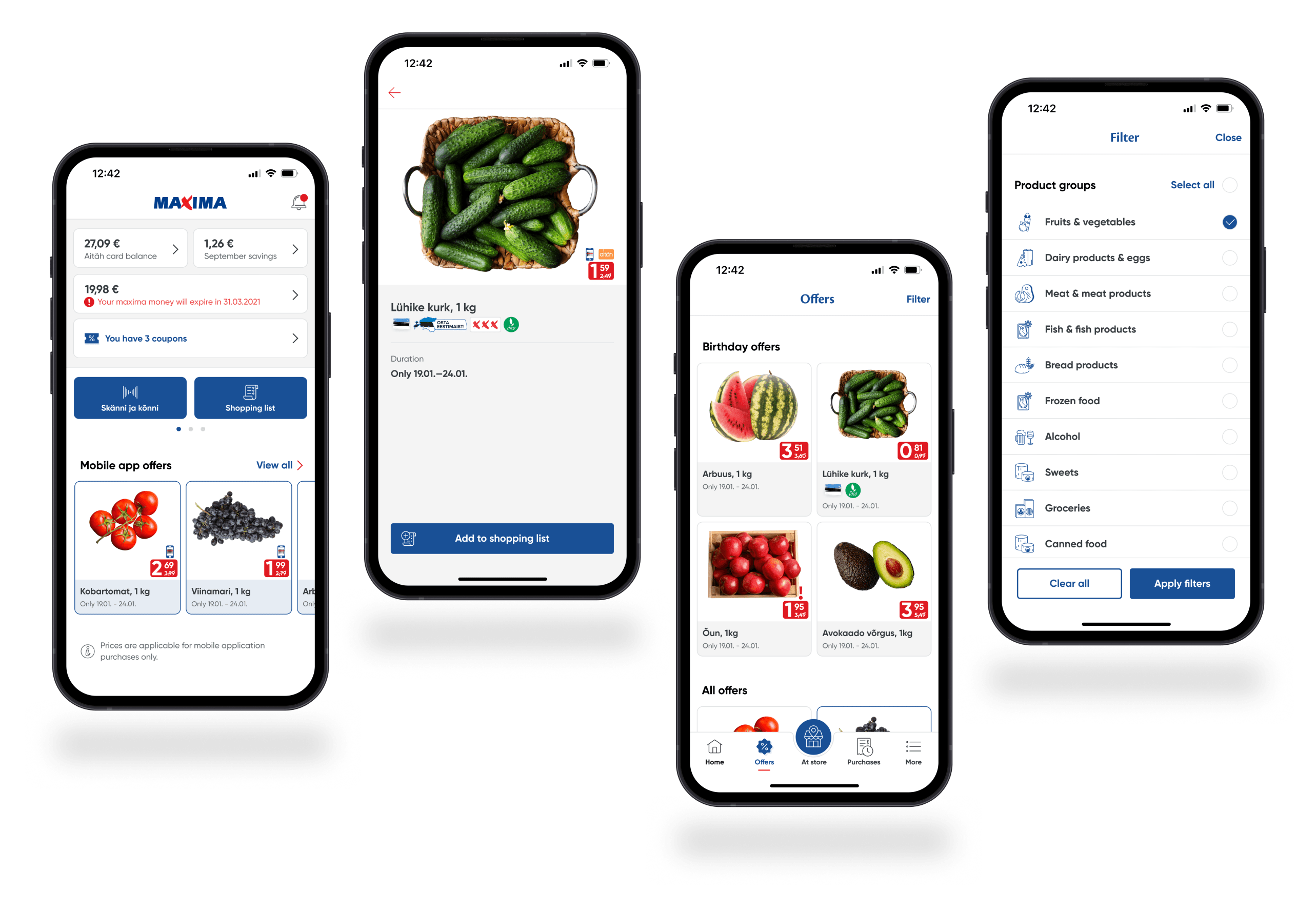 The redesigned version of Maxima's mobile app allows customers to shorten their shopping journey. On average, the checkout went from 42.3 seconds to 29.7 seconds and from 7 to 4 steps.