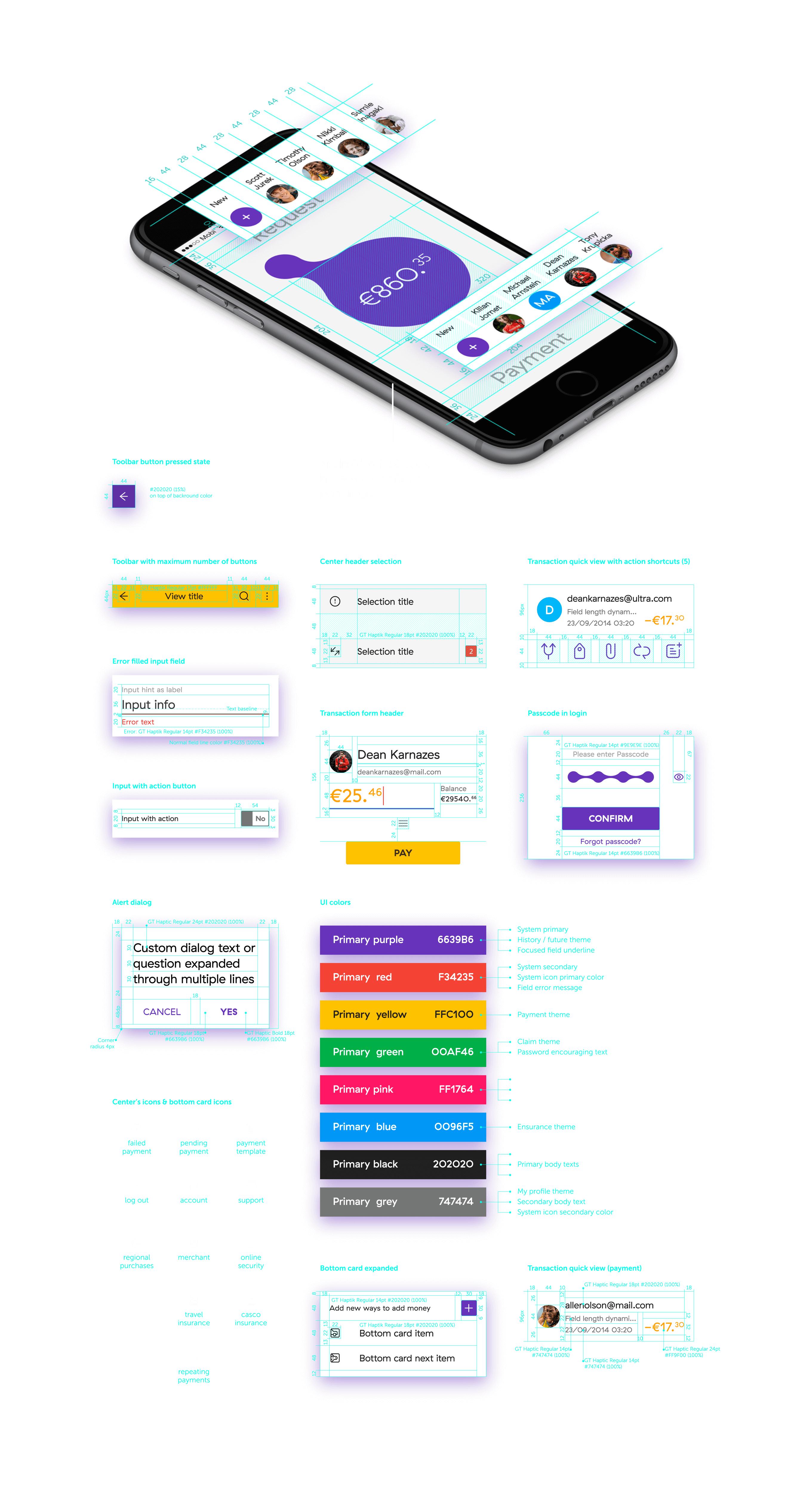 Our philosophy is: “Making payments is as easy as snapping your fingers.” Just connect your friend to your account bubble, and it’s done! Additionally, we custom colour-coded different parts of the application to enhance the user’s navigation.